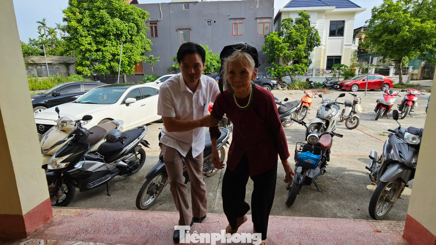 | Cụ Vũ Thị Phòng được tổ công tác chở đến nhà văn hóa thôn Triệu Xá kích hoạt tài khoản định danh điện tử. |