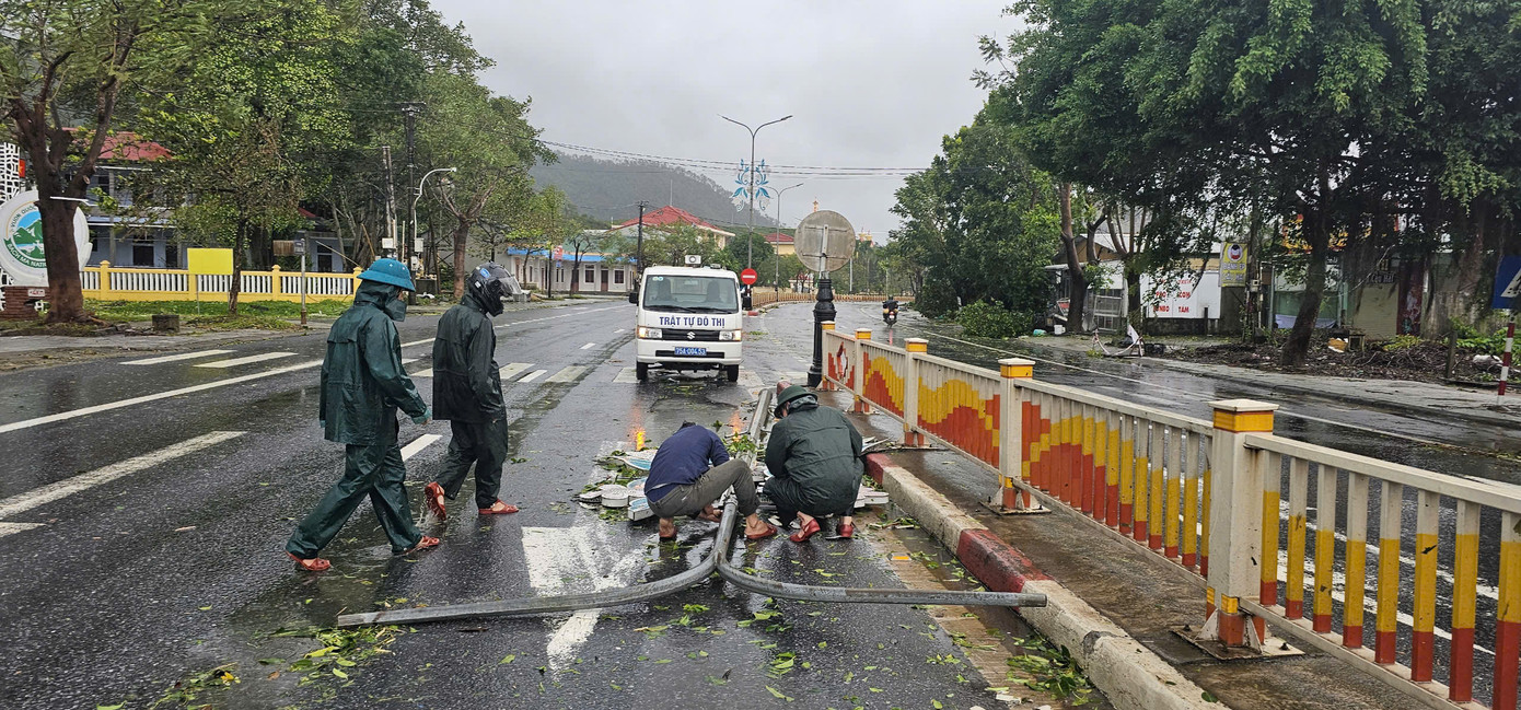 Chiều cùng ngày, lực lượng thuộc Bộ Chỉ huy Bộ đội Biên phòng, Bộ Chỉ huy Quân sự tỉnh TT-Huế tiếp tục tiếp tục ra quân giúp dân khắc phục hậu quả bão số 6, dựng lại hàng quán bị sập đổ, dọn dẹp trụ đèn chiếu sáng và cây xanh bị đổ ngã trên nhiều tuyến đường để sớm thông tuyến giao thông trở lại.