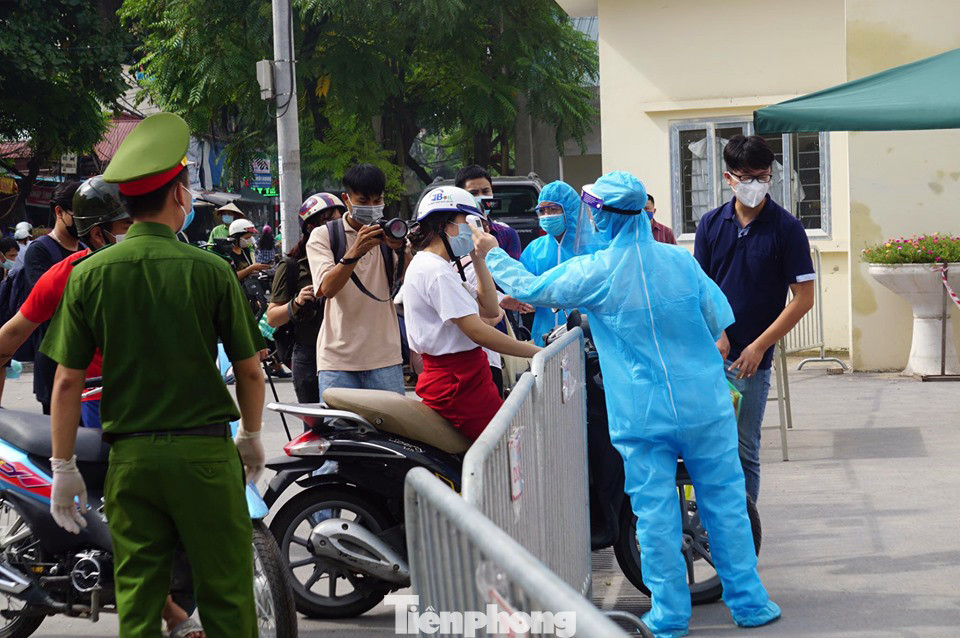 Ngoài ra, một tổ cảnh sát tuần tra lưu động dọc đường Trần Cung và Bệnh viện E phát loa tuyên truyền phòng chống COVID-19. Rà soát F1, F2 sẵn sàng ứng phó