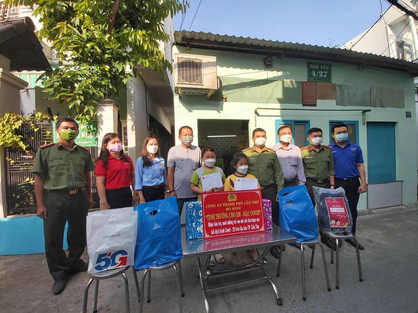 Đó là hoàn cảnh của 2 em Châu Hoàng Gia (sinh năm 2011) học lớp 5 và em Châu Ngọc Hân (sinh năm 2015) học lớp 1, mồ côi mẹ do nhiễm COVID-19. Hiện tại, 2 em sống với cha trong căn phòng trọ tại số 4/36, CMT8, khu vực 7, phường Cái Khế. Theo đó, Công an thành phố giao cho Phòng Kỹ thuật Nghiệp vụ nhận đỡ đầu, tiếp sức, hỗ trợ, đồng hành cùng gia đình trong chăm sóc, nuôi dưỡng 2 em đến năm 18 tuổi. Cụ thể, sẽ hỗ trợ mỗi năm trên 3 triệu đồng/em, duy trì đến khi các em 18 tuổi. Ngoài ra, còn vận động tặng thêm quà, tập sách, dụng cụ học tập cho 2 em.