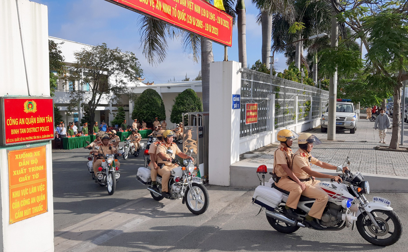 | Trạm CSGT Tân Túc tuần tra, xử lý sau lễ ra quân. Ảnh: Hoàng Thuận |