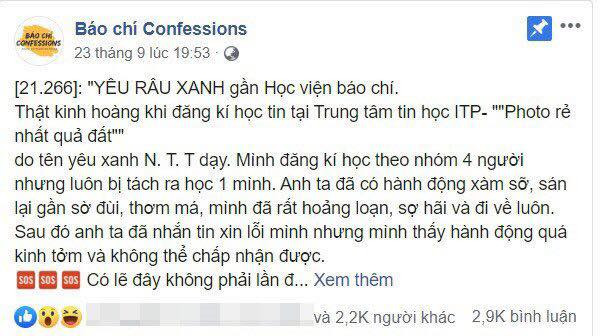Trước đó, trên mạng xã hội xuất hiện thông tin một nữ sinh viên tố cáo chủ trung tâm tin học trên đường Nguyễn Phong Sắc (phường Dịch Vọng Hậu, quận Cầu Giấy) có hành vi sàm sỡ như "sờ đùi, thơm má" khi đến học tại đây.