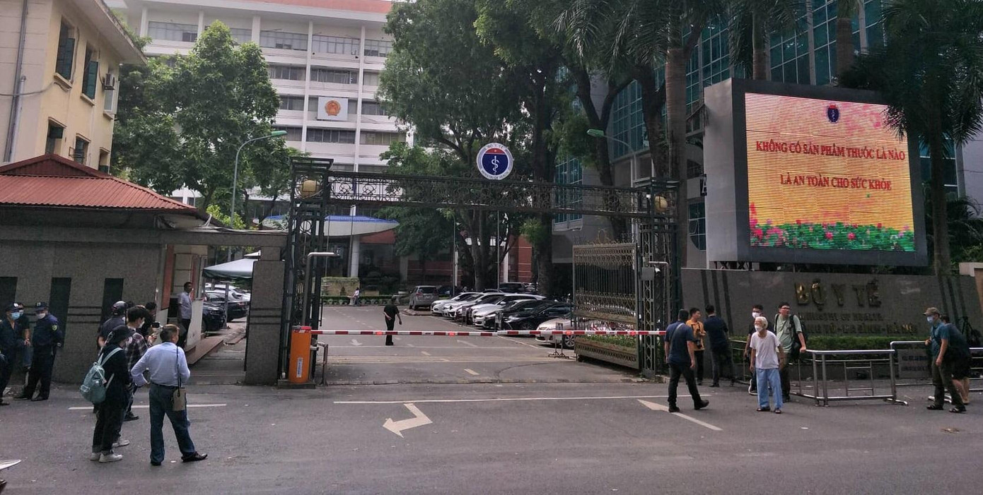 Phía ngoài cổng Bộ Y tế, rất đông phóng viên báo đài tới ghi nhận và đưa thông tin. Cùng với đó, lực lượng công an có mặt đảm bảo an ninh trật tự.