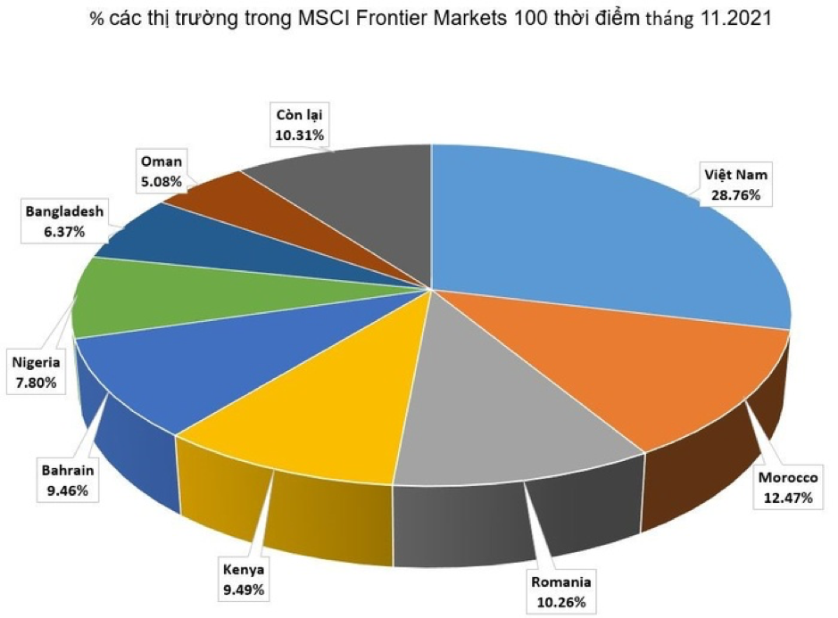 Việc TTCK Việt Nam chiếm tỷ trọng cao nhất trong nhóm thị trường cận biên của MSCI sẽ thu hút một lượng vốn lớn từ các quỹ đầu tư bám theo chỉ số MSCI Frontier Markets 100 Index.