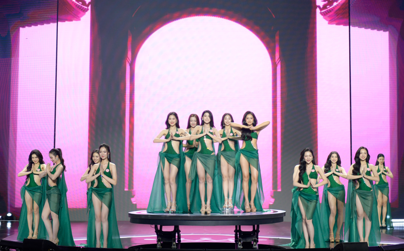 Sau đó, 41 thí sinh Hoa hậu Việt Nam 2024 chính thức bước vào phần trình diễn bikini - một trong những nội dung quan trọng của đêm thi Chung khảo toàn quốc. Sau hơn một tháng tập luyện cùng đạo diễn catwalk, biên đạo múa và chuyên gia đào tạo phong thái, các thí sinh đã có sự thay đổi rõ rệt.
