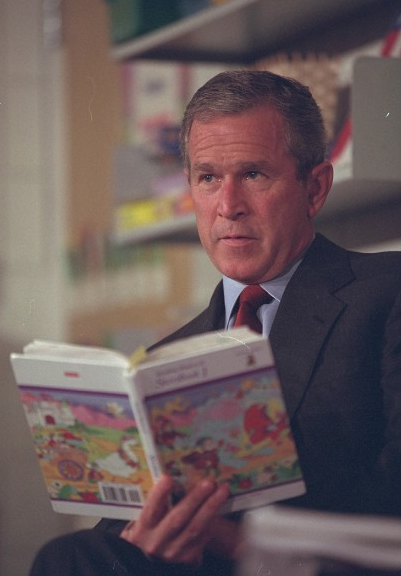 Ông Bush lắng nghe các em học sinh đọc bài. Tổng thống không hay biết thảm kịch kinh hoàng đang xảy đến với nước Mỹ. Khi ấy, ông Bush chỉ biết tin một máy bay đâm vào Trung tâm Thương mại Thế giới (WTC). Đó chính là phi cơ thứ nhất. “Tôi nhận thông báo rằng một máy bay va vào WTC. Tôi cho rằng đó là do lỗi con người, thời tiết xấu hoặc điều gì đó bất thường xảy ra với phi công", Tổng thống Bush nói với National Geographic.