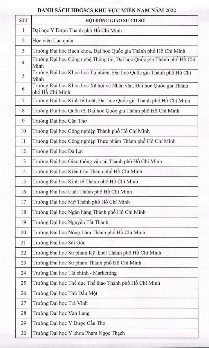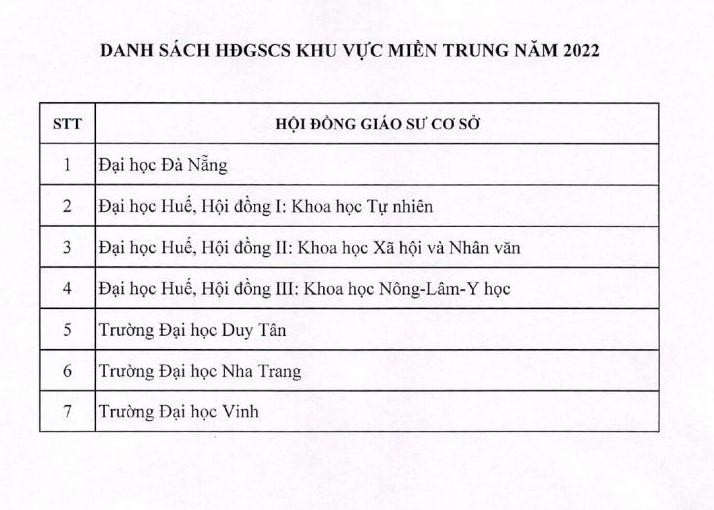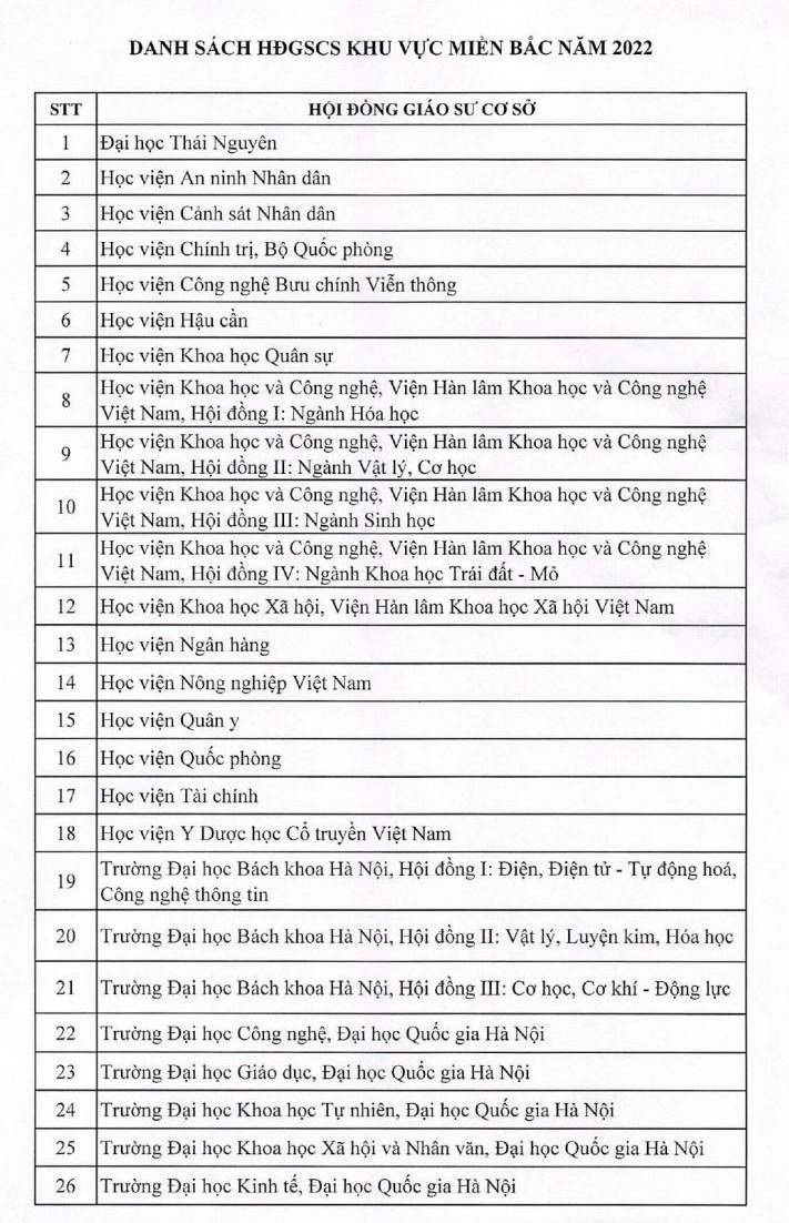 Theo đó, năm 2022 có 91 Hội đồng Giáo sư cơ sở gồm miền Bắc 54 Hội đồng, miền Nam 30 Hội đồng và miền Trung 7 hội đồng.