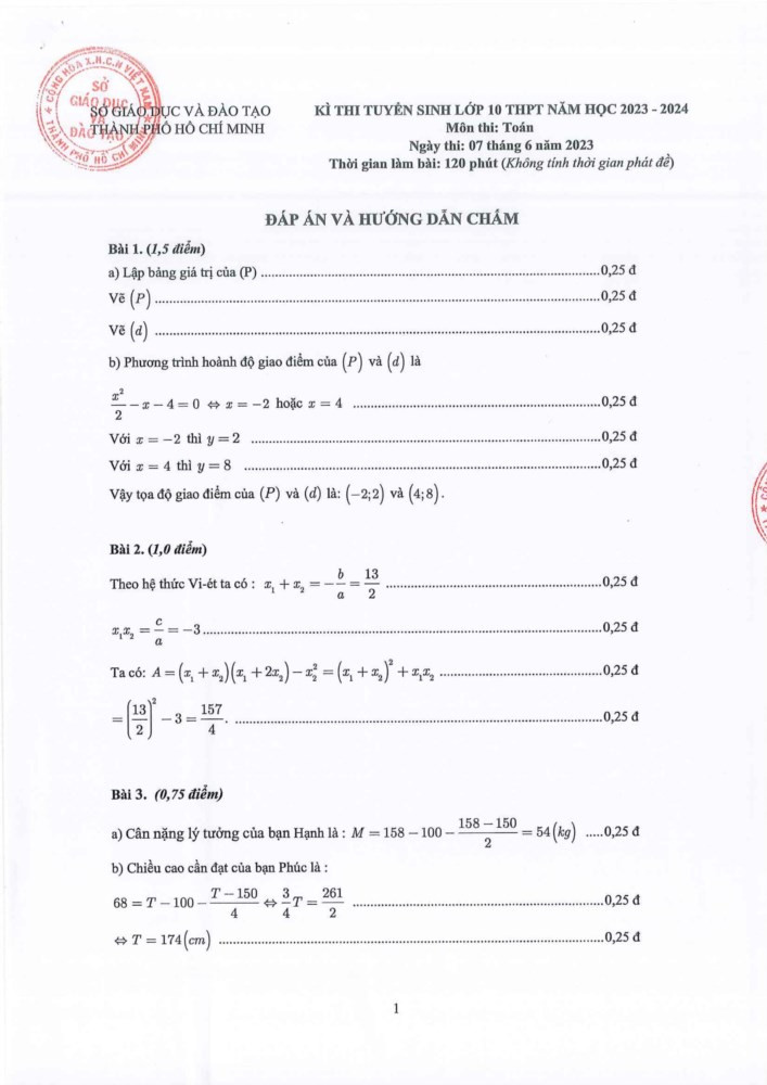 | Đáp án môn Toán được Sở GD&ĐT đăng tải. |