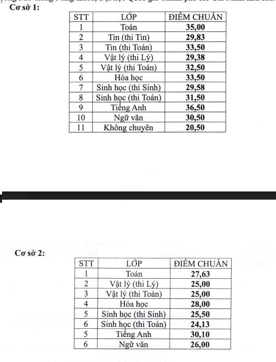 Cơ sở 2, tại Khu đô thị ĐHQG-HCM (khu phố 6, phường Linh Trung, quận Thủ Đức) tuyển 210 học sinh cho 6 lớp chuyên toán, vật lý, hóa học, sinh học, tiếng Anh và ngữ văn, mỗi lớp không quá 35 học sinh.