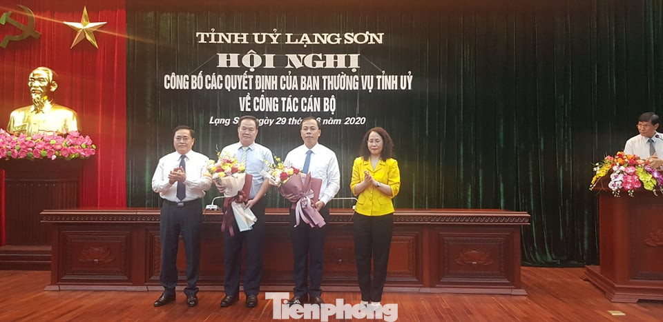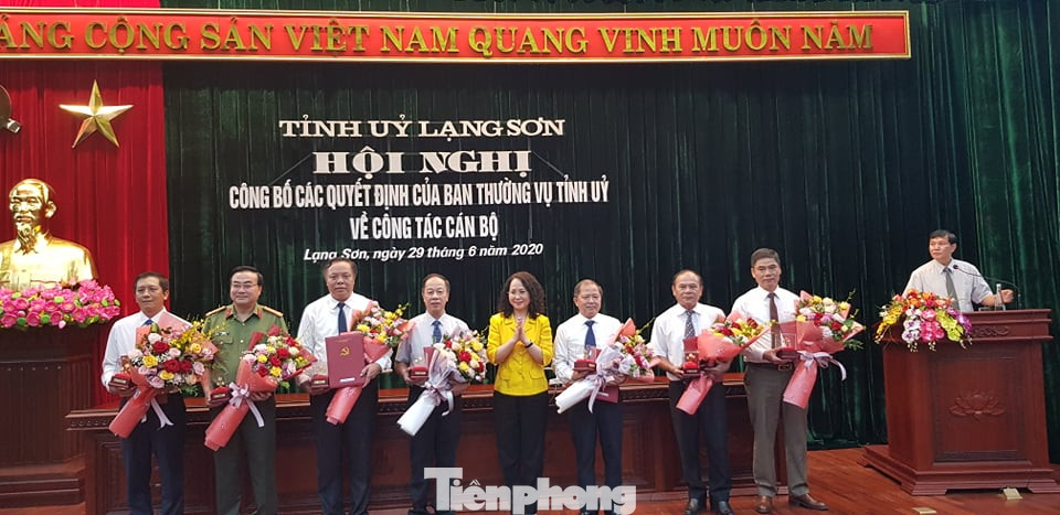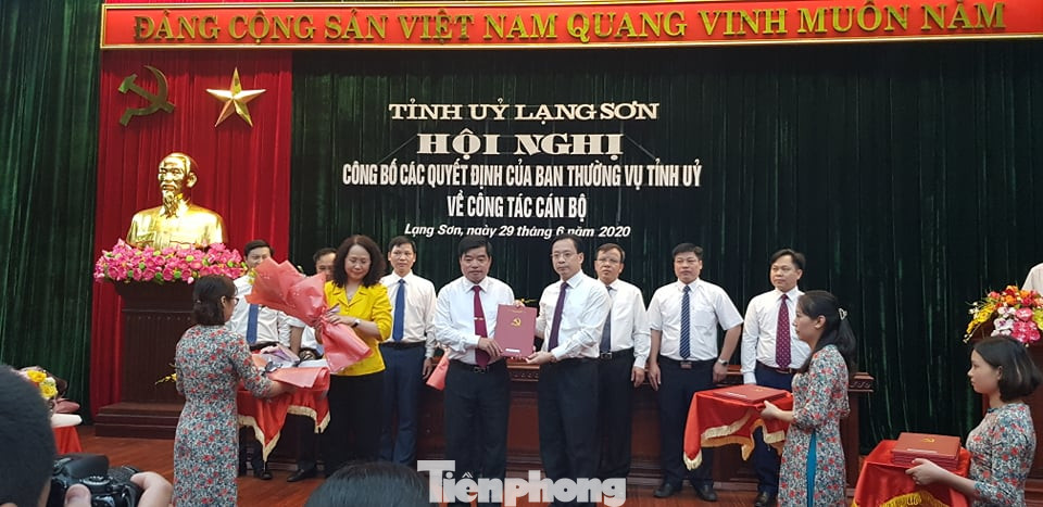 Ông Nguyễn Công Trưởng, Phó chủ tịch UBND tỉnh Lạng Sơn (giữa) nhận quyết định của Tỉnh ủy Lạng Sơn đảm trách cương vị Bí thư thành ủy Lạng Sơn .Ảnh: