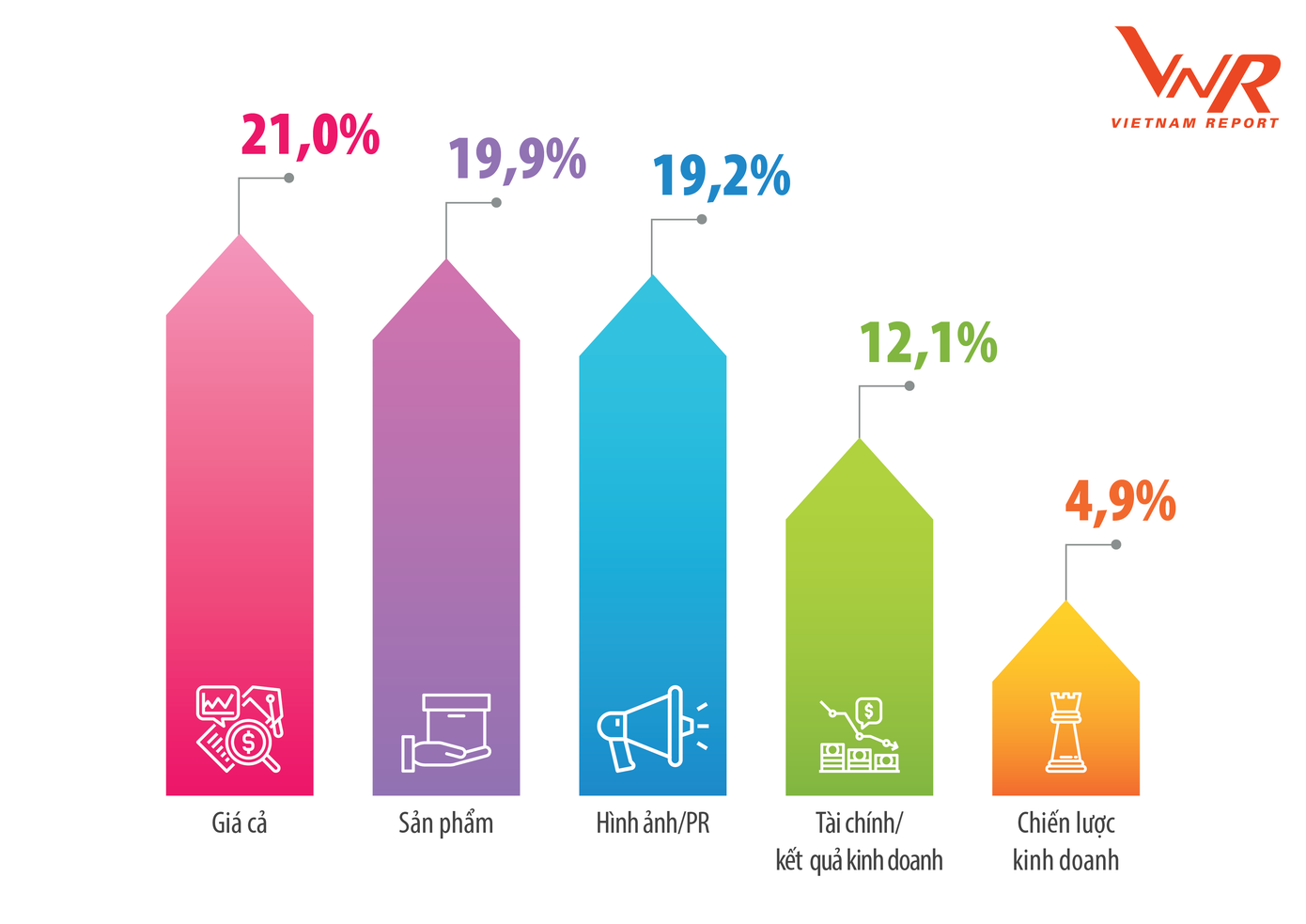 Kết quả phân tích dữ liệu truyền thông của Vietnam Report chỉ ra rằng, số lượng bài báo về doanh nghiệp rất ít, sự xuất hiện của các đại diện doanh nghiệp không nhiều (so sánh với các ngành dịch vụ khác như vận tải, thực phẩm - đồ uống, bán lẻ…). Xét về sự đa dạng nhóm chủ đề bao phủ, đa số thông tin của doanh nghiệp tập trung vào các chủ đề Sản phẩm, Giá cả và Hình ảnh/PR. Nếu như năm 2018, chủ đề được bao phủ nhiều nhất là Hình ảnh/PR thì năm nay có sự dịch chuyển, Giá cả là chủ đề được nhắc đến nhiều nhất.