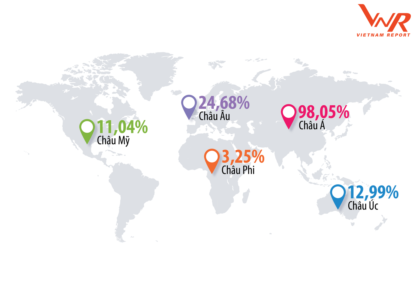 Với khách du lịch Việt Nam, châu Á vẫn là điểm đến hấp dẫn nhất với khoảng cách địa lý ngắn, miễn thủ tục visa, có nhiều tương đồng văn hóa, và có nhiều đường bay thẳng từ Việt Nam đến các quốc gia châu Á của các hãng hàng không giá rẻ được đưa vào khai thác đã giúp khu vực này ngày càng được nhiều người Việt Nam lựa chọn trong chuyến du lịch nước ngoài. Theo kết quả khảo sát của Vietnam Report đối với nhóm khách từng đi nước ngoài, có đến 98,05% số người được hỏi lựa chọn châu Á là điểm đến của mình, tiếp đó là châu Âu (24,68%), châu Úc (12,99%), châu Mỹ (11,04%) và cuối cùng là châu Phi (3,25%).