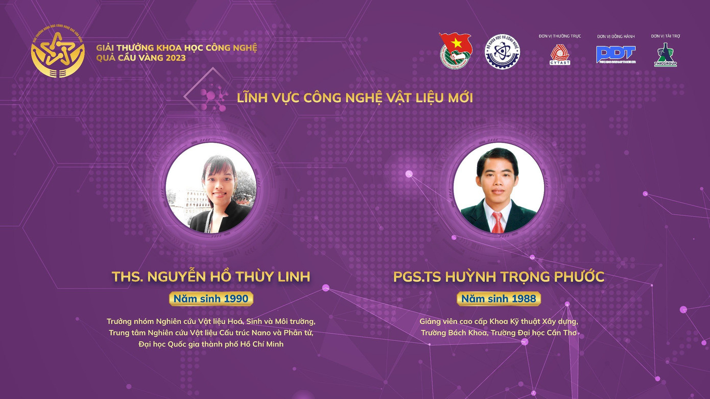 10. PGS.TS Huỳnh Trọng Phước, 35 tuổi, giảng viên cao cấp khoa kỹ thuật xây dựng, trường ĐH Bách khoa (ĐH Cần Thơ), với nghiên cứu đưa ra giải pháp tận dụng hiệu quả lượng lớn bùn lắng từ các nhà máy xử lý nước và tro bay nhiệt điện để sản xuất vật liệu cường độ thấp có kiểm soát (CLSM), với định hướng ứng dụng trong san lấp mặt bằng nhằm thay thế nguồn cát san lấp đang rất khan hiếm hiện nay.