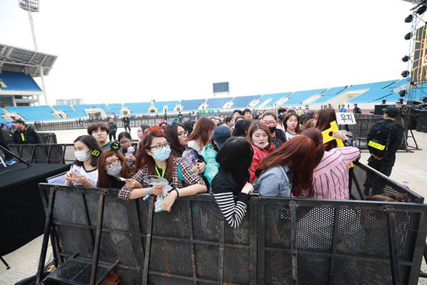 Các fans xếp hàng rất ngay ngắn và trật tự để đợi qua cổng soát vé.