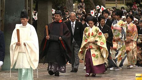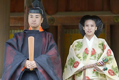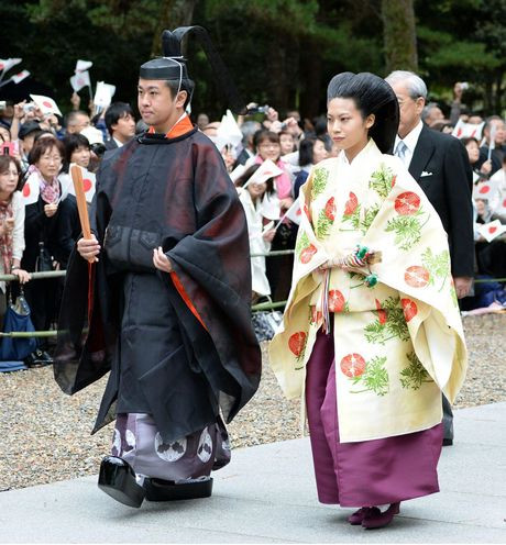 21 thành viên thân thiết của hai bên gia đình đã chứng kiến lễ cưới chính thức của cặp đôi tại ngôi đền Izumo Taisha.