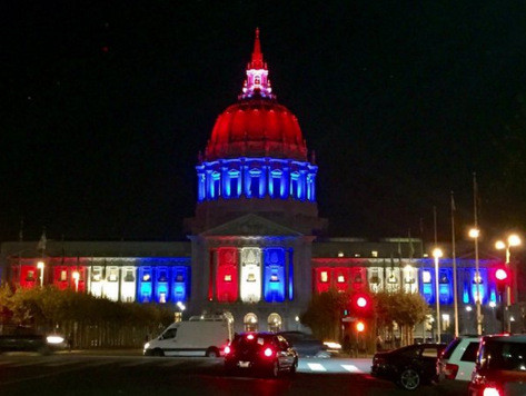 Tòa nhà Trung tâm thương mại thế giới ở New York đã chiếu đèn màu xanh – trắng – đỏ (màu quốc kì nước Pháp) theo lệnh của Thống đốc Andrew Cuomo.