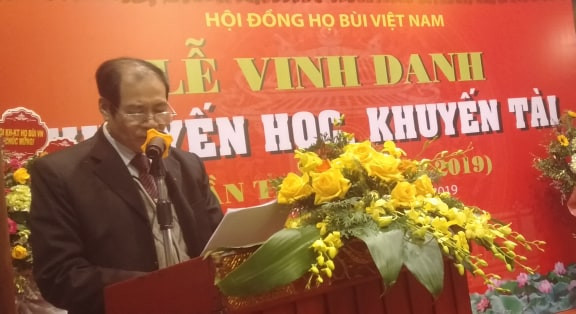 Từ lễ vinh danh này, các anh chị vừa được phong học vị tiến sĩ, học hàm giáo sư, phó giáo sư, các em học sinh đỗ thủ khoa hoặc học sinh giỏi quốc gia, quốc tế, các vận động viên…sẽ là nòng cốt lôi cuốn con em họ Bùi cả nước phấn đấu vươn lên để có nhiều nhân tài cho dòng họ và cho đất nước.