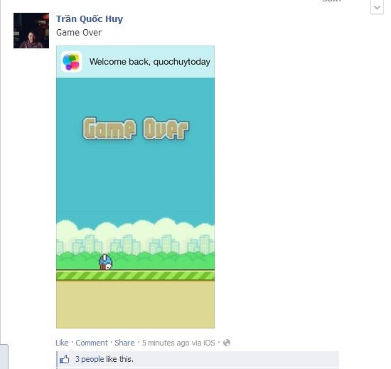 "Xin chào lập trình viên đã tạo ra Flappy Bird và những người khác. Tôi nghe nói trò chơi này sẽ bị gỡ xuống và tôi không muốn thế. Trò chơi này nhiều lúc gây phiền nhiễu nhưng đó cũng chính là lí do tôi thích nó. Tôi hy vọng đó là tin đồn và bạn không nên gỡ trò chơi này. Cái mà tôi học được từ game này là lòng kiên trì, cố gắng vượt qua những thử thách khi liên tục vấp ngã. Nó đã dạy tôi phải di chuyển từ tốn vì sẽ ngã đau khi vội vàng. Nó dạy tôi rằng khi đã đạt được mục tiêu, cần phải cố gắng hơn để đạt được thành tích cao hơn và không bao giờ dừng lại khi còn có thể", một game thủ nickname Hona Lolo chia sẻ.