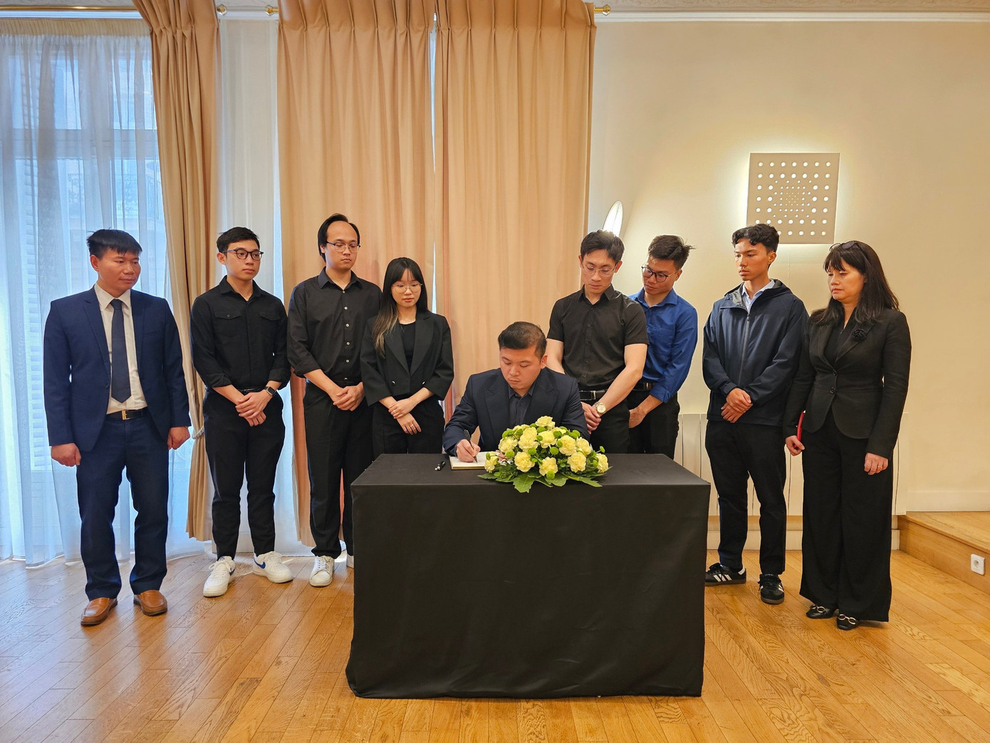SVO - Bày tỏ sự tri ân đối với những đóng góp vô cùng to lớn của Tổng Bí thư Nguyễn Phú Trọng, Hội Thanh niên, Sinh viên Việt Nam tại nước ngoài đã đến Đại sứ quán Việt Nam viếng và ghi sổ tang tưởng niệm.