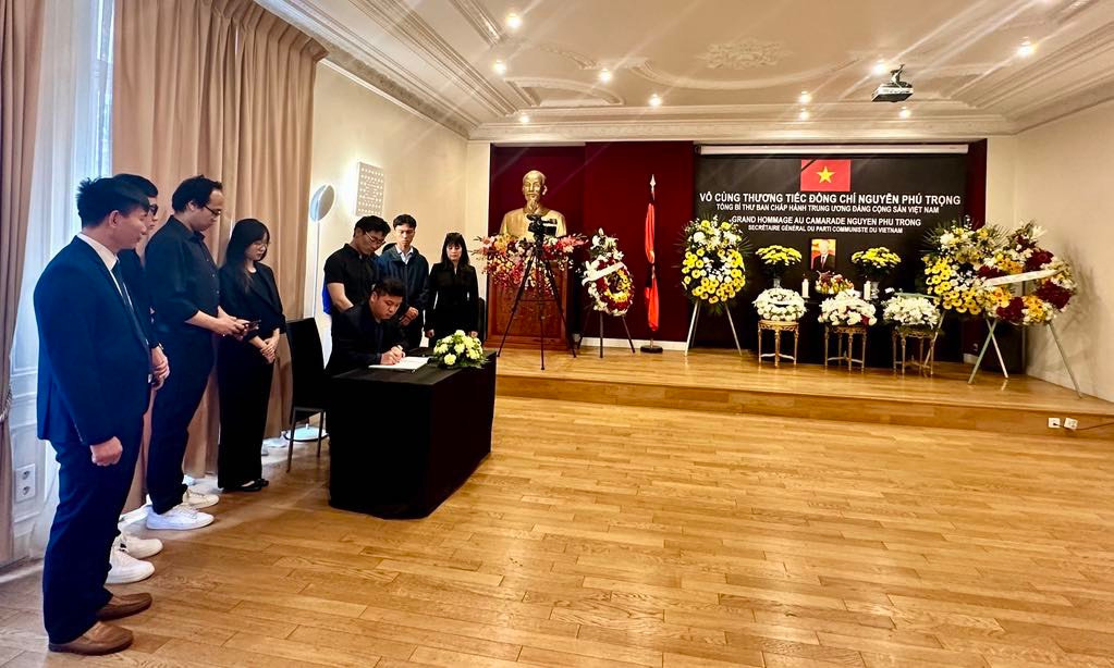 Cùng ngày, các đoàn đại biểu của các tổ chức Hội Sinh viên Việt Nam ở nước ngoài đã tham dự Lễ Quốc tang Tổng Bí thư Nguyễn Phú Trọng tại trụ sở Đại sứ quán Việt Nam ở nước ngoài. Với tình cảm tri ân, tưởng nhớ Tổng Bí thư Nguyễn Phú Trọng, cộng đồng thanh niên, sinh viên Việt Nam đang sinh sống và học tập ở nước ngoài sẽ mãi khắc ghi những lời căn dặn của đồng chí Tổng Bí thư về việc không ngừng nỗ lực học tập, rèn luyện và phấn đấu để tiếp tục đóng góp một phần công sức nhỏ bé của mình vào công cuộc xây dựng đất nước Việt Nam phát triển phồn vinh, văn minh, hạnh phúc, vững bước đi lên chủ nghĩa xã hội như di nguyện của Chủ tịch Hồ Chí Minh và các bậc tiền bối.