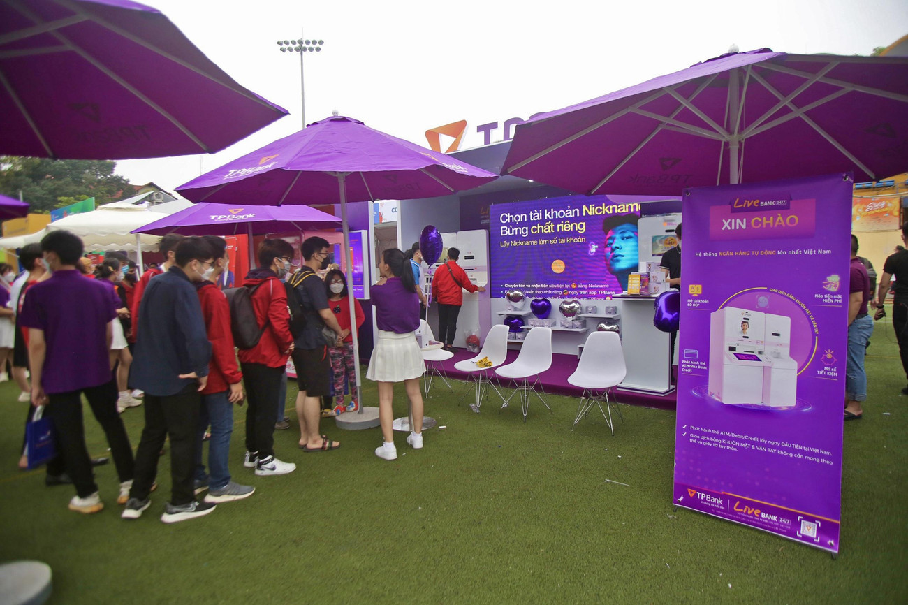 | Tại sự kiện chính với tâm điểm Sóng Festival, gian hàng của Ngân hàng TP Bank gây ấn tượng với gam màu tím làm chủ đạo. Đặc biệt, với Ngân hàng tự động TP Bank LiveBank thu hút sự tò mò của đông đảo các bạn sinh viên. |