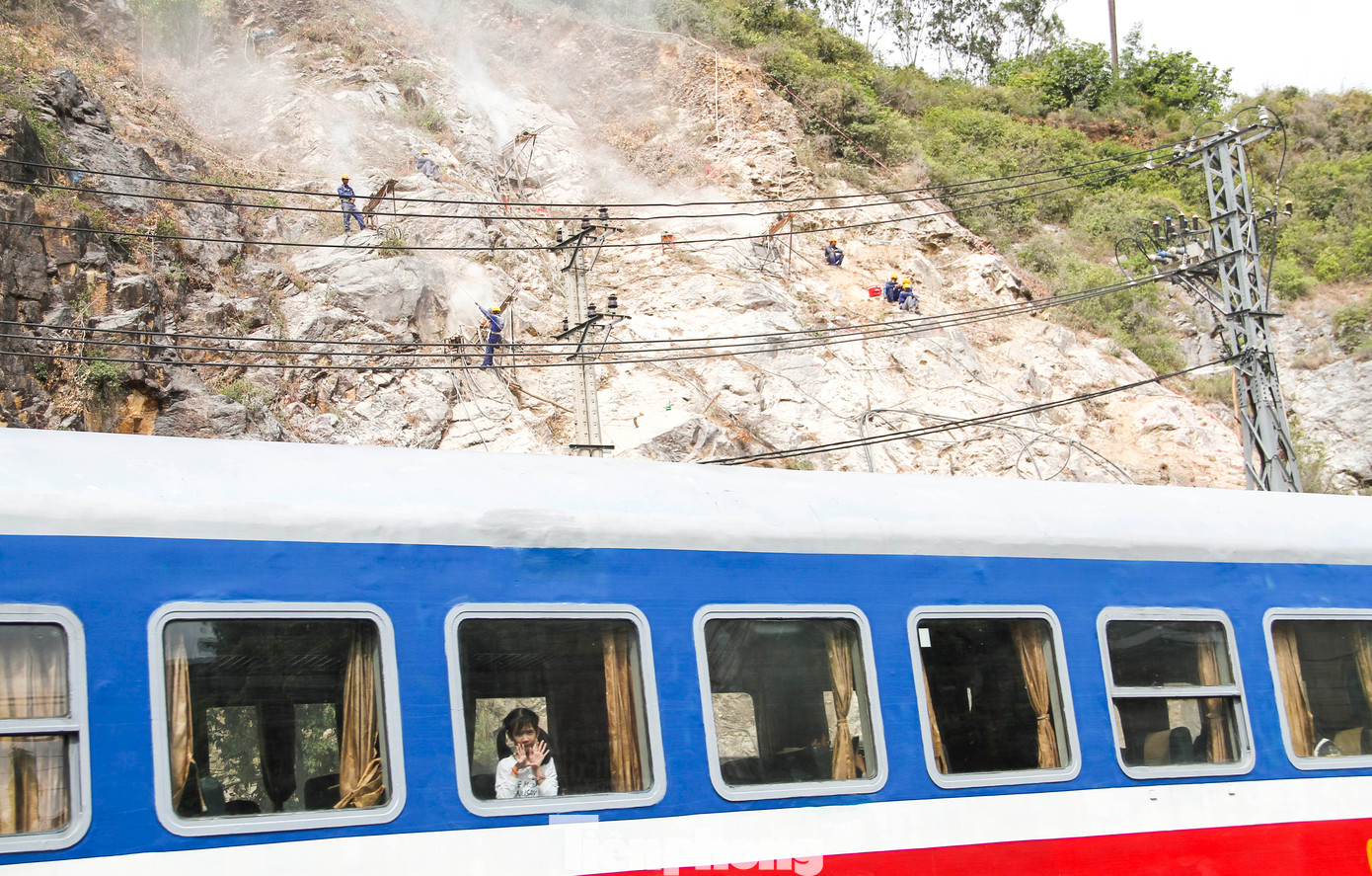 Giải pháp thi công chủ yếu là khoan neo, giăng lưới thép sức kháng cao và gọt tẩy một số đoạn dốc đứng. (Ảnh: Trương Định)