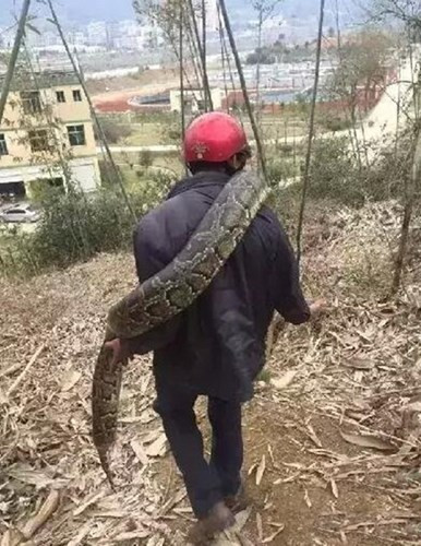 Cách đây không lâu, các công nhân xây dựng đường ở tỉnh Vân Nam, phía tây nam của Trung Quốc cũng đã phát hiện và bắt được một con trăn thành tinh được cho là đã 100 tuổi, nặng 37kg, dài 3,76m. Nguồn: Sina.