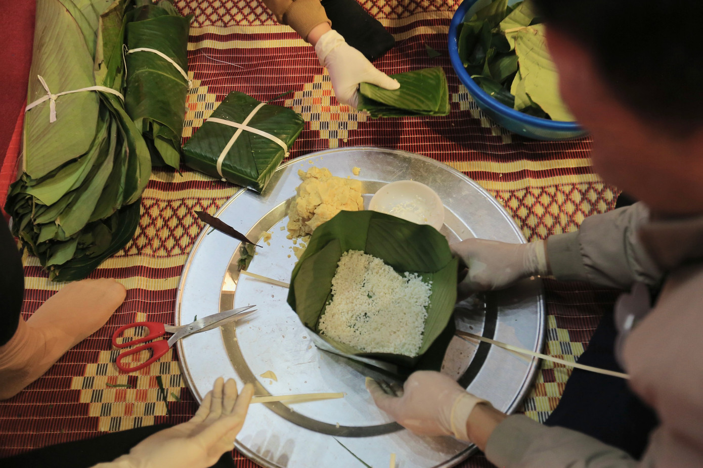 | Ngoài việc gói bánh nhanh, các đội còn phải đảm bảo tính thẩm mỹ của từng chiếc bánh và trang trí bàn trưng bày sản phẩm. |