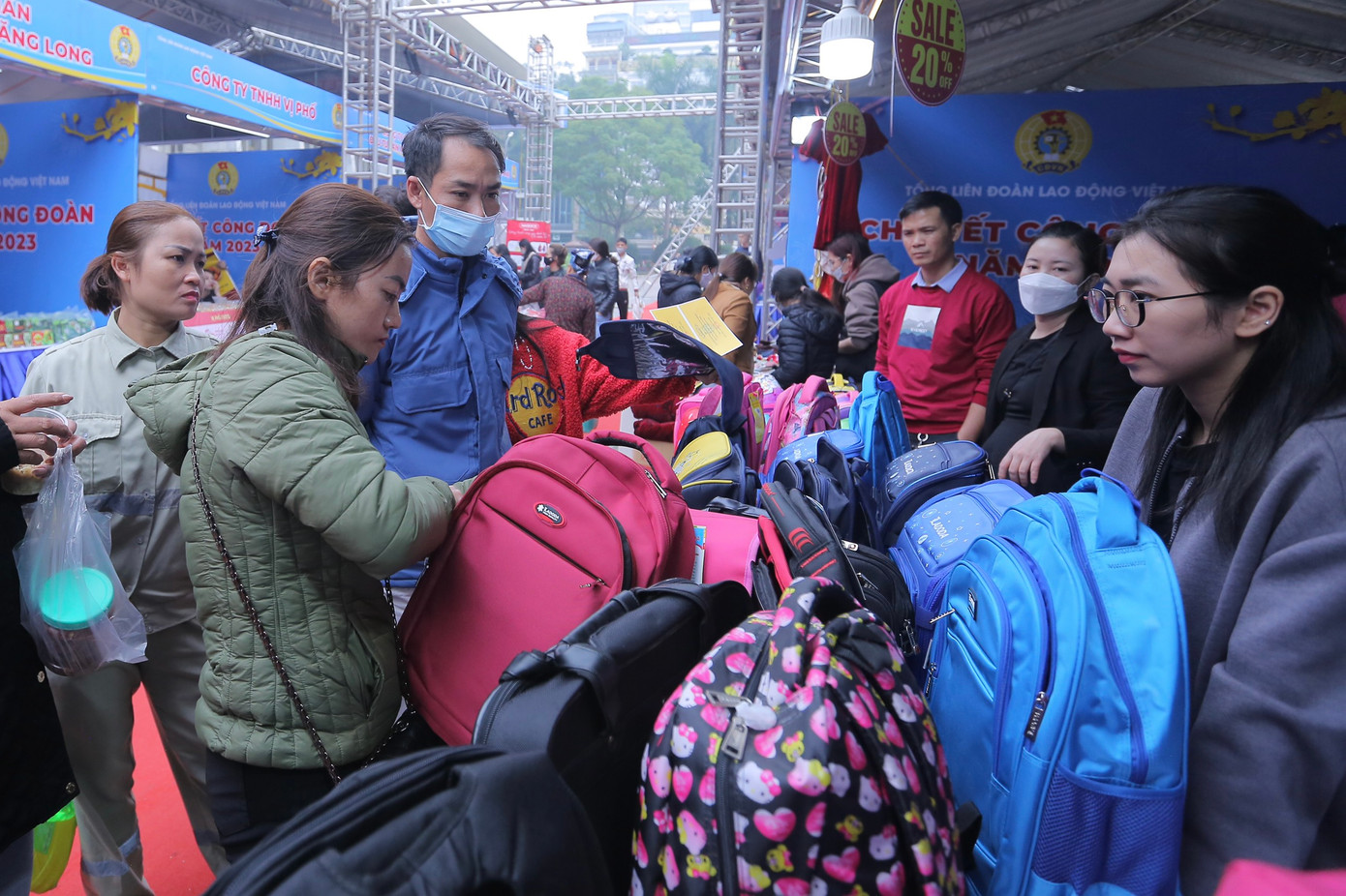 | Trong khuôn khổ chương trình Tết sum vầy cũng có các gian hàng bán các mặt hàng thiết yếu, đặc biệt, có các gian hàng 0 đồng để hỗ trợ các công nhân, lao động có hoàn cảnh khó khăn dịp Tết đến, xuân về. |