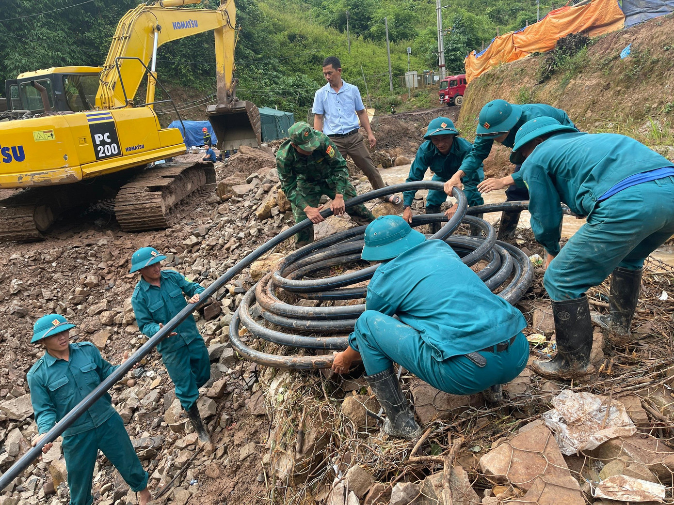 Hiện đang huy động thêm 2 máy chuyên dụng, công suất cao đang di chuyển từ thành phố Điện Biên Phủ vào, dự kiến khoảng 20h có mặt tại hiện trường.