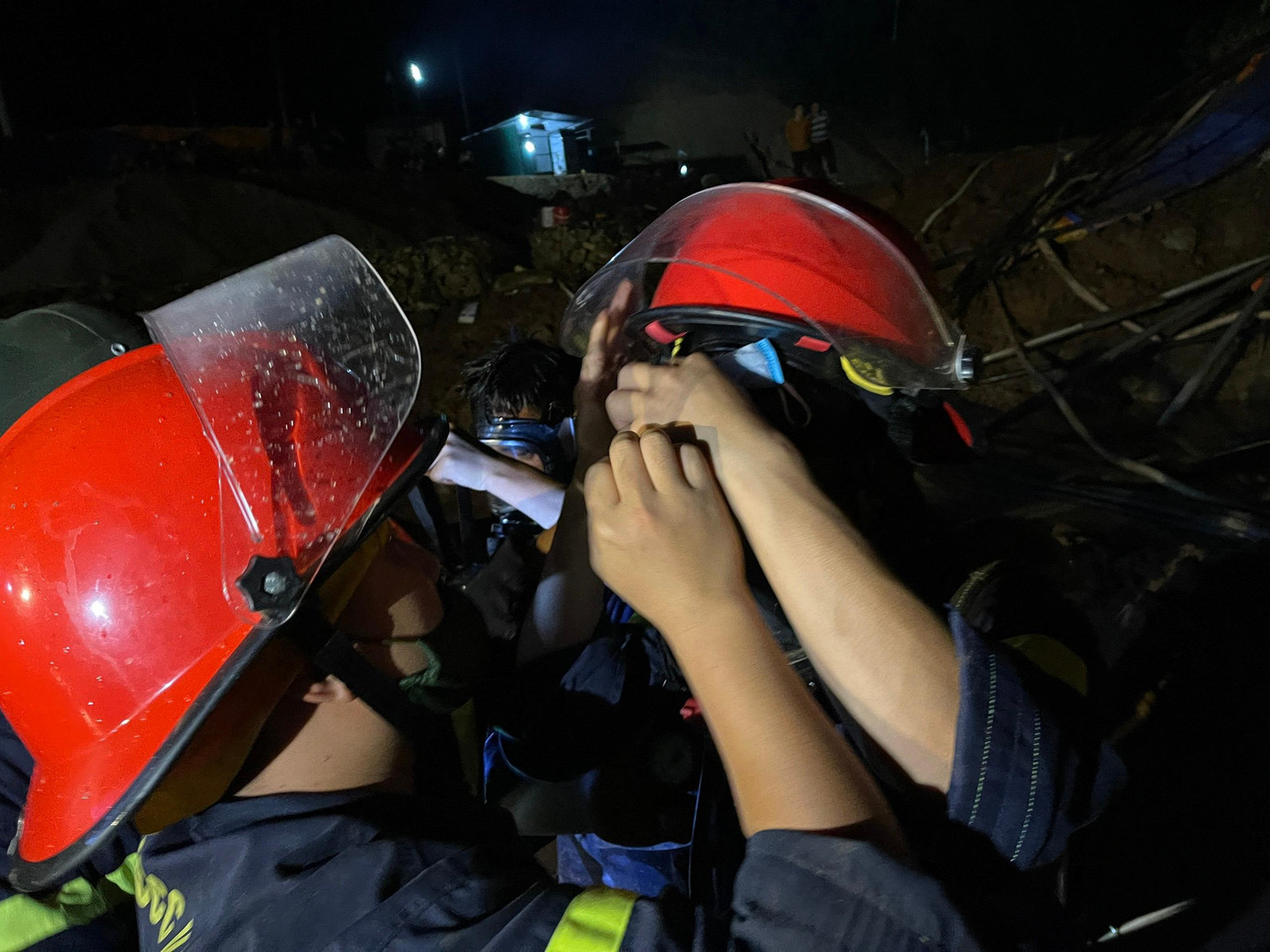 Các lực lượng với khoảng 70 đến 80 người gồm công an, quân đội đang tập trung hút nước ra và di chuyển đất, đá ra ngoài để mong sớm tiếp cận được với vị trí công nhân bị mắc kẹt.
