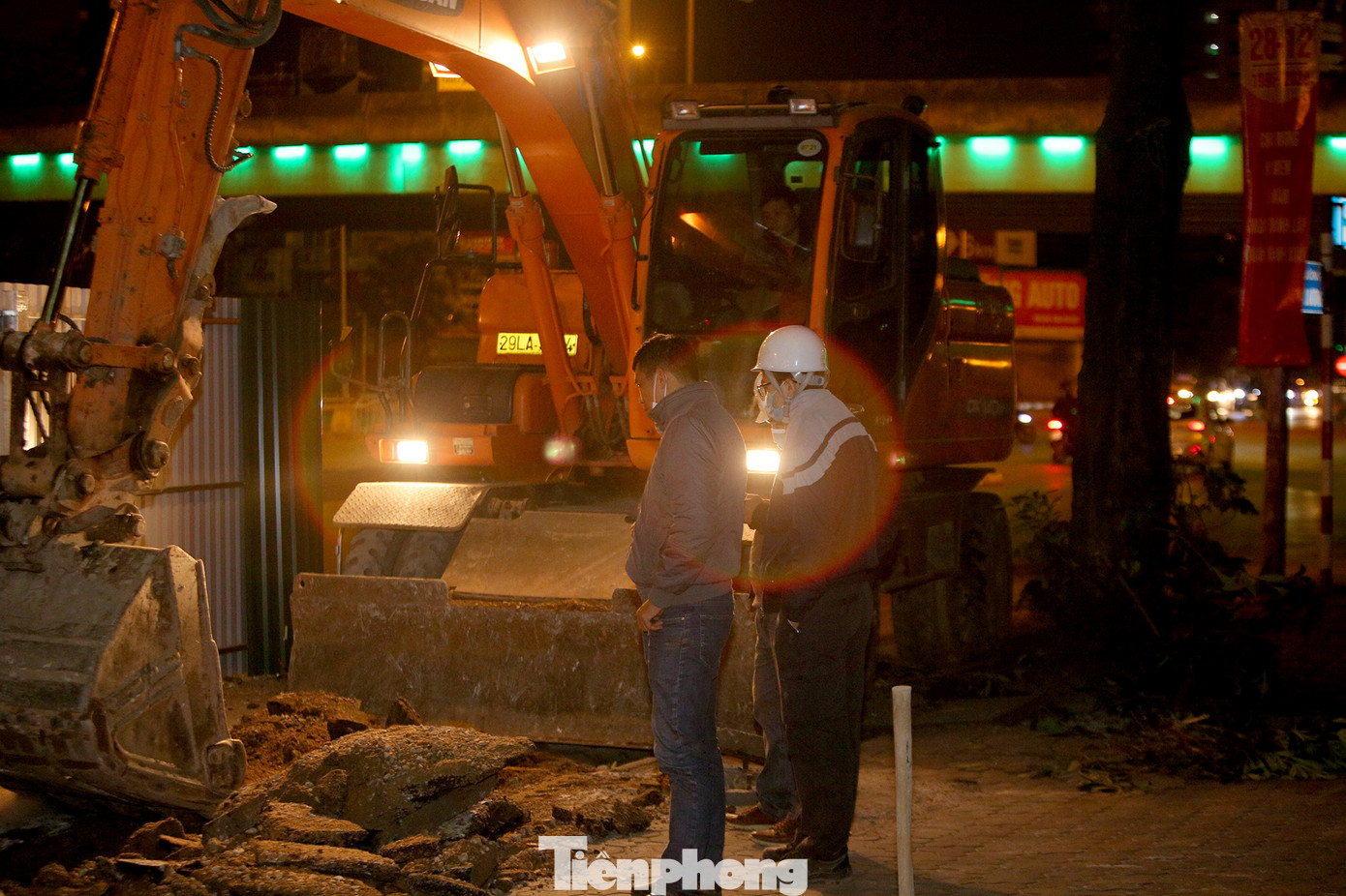 22h tối các công nhân bắt đầu chuẩn bị máy móc để thi công hầm đường bộ nút giao Lê Văn Lương - Khuất Duy Tiến (quận Thanh Xuân) xuyên đêm.