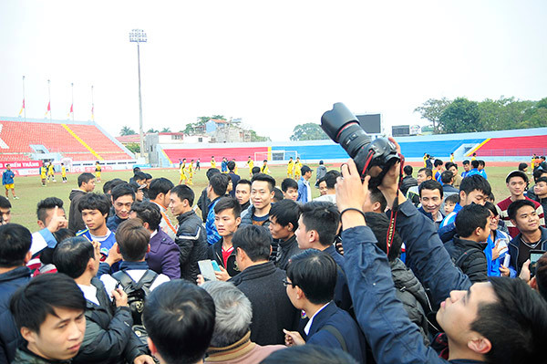 16h30 khi buổi tập HA Gia Lai kết thúc, các cầu thủ ra xe về khách sạn thì hầu hết các cầu thủ Công Phượng, Xuân Trường, Tuấn Anh, thậm chí cả HLV Grachen cũng bị rất đông các CĐV bao vây để xin được chụp ảnh cùng.