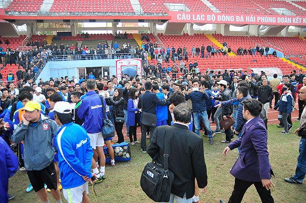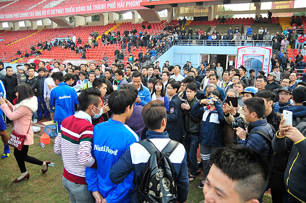 Hàng ngàn CĐV Hải Phòng đã có mặt tại SVĐ Lạch Tray chiều 20/1 để xem buổi tập của các cầu thủ đội bóng HA Gia Lai.