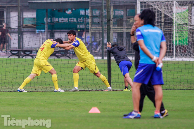 Trong buổi tập này có sự góp mặt của Văn Hậu trở về từ Hà Lan...