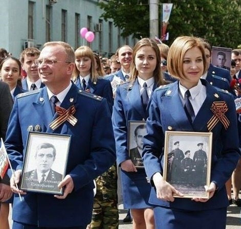 Xuất hiện trong buổi diễu hành, công tố viên xinh đẹp Crimea Natalia Poklonskaya nhanh chóng thu hút sự quan tâm của truyền thông và công chúng.