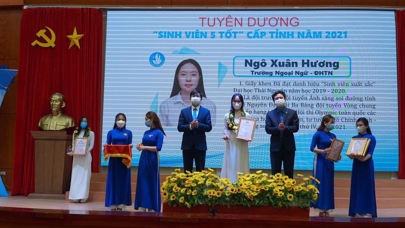| Ngô Xuân Hương tại Chương trình “Sinh viên Thái Nguyên, những câu chuyện đẹp” và Tuyên dương “Sinh viên 5 tốt” cấp tỉnh năm 2021. |