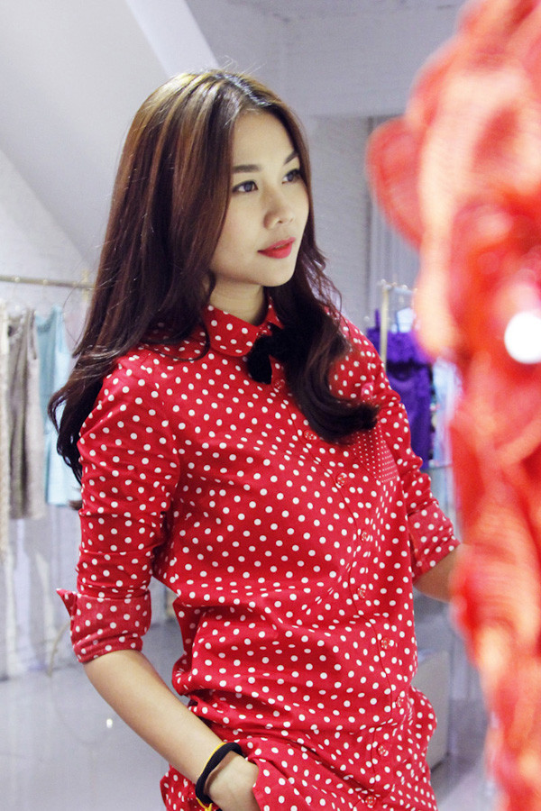 Thanh Hằng thường xuyên mặc đồ của Công Trí trong thời gian ghi hình cho VN's Next Top Model 2013.