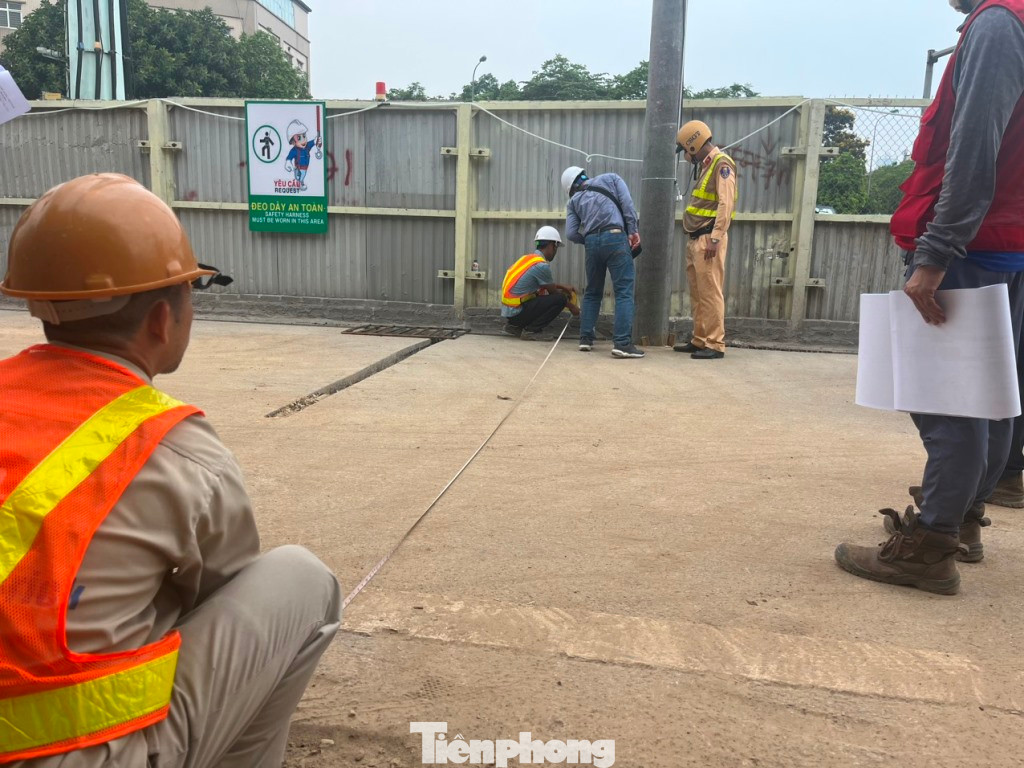 Trao đổi PV Tiền Phong, Thiếu tá Phạm Văn Chiến, Đội trưởng Đội CSGT số 6, Phòng CSGT Hà Nội cho biết: Tại hiện trường dự án, tổ công tác ghi nhận, hàng rào công trình dự án thay vì chỉ dựng ở giữa nút giao, từ đầu tuần này đã cho rào kéo dài thêm từ 80 đến 120 mét về phía đường Phạm Hùng (hướng đi cầu Thanh Trì) và đường Phạm Văn Đồng (hướng đi cầu Thăng Long). Phạm vi chiếm dụng chiều rộng mặt cắt ngang 8,5 đến 12 mét (tương đương 2 đến 3 làn xe).
