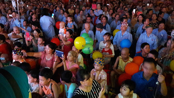 “Trung thu yêu thương 2018” mở màn với tiết mục lân sư rồng đầy ấn tượng và những tràng pháo tay đón chào từng bệnh nhi bước xuống từ phòng bệnh rất cảm động và ấm áp. Chỉ diễn ra trong hơn 2 giờ đồng hồ, nhưng chương trình đã thực sự mang lại cho các em một không khí vui tươi, sôi động, tràn ngập sắc màu. Những tiếng cười thơ ngây, những khuôn mặt rạng rỡ đã xua tan tất cả sợ hãi, bỏ mặc những lo âu và đau đớn của bệnh tật.