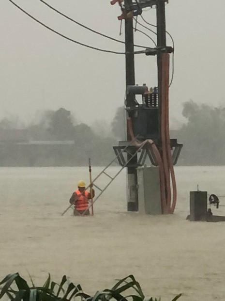 Do tình trạng mưa to, gió lớn kèm theo lốc xoáy nên đến thời điểm hiện tại trên lưới điện Hà Tĩnh còn 74 TBA đang cắt điện, 9741 khách hàng bị mất điện, chủ yếu ở các huyện Thạch Hà, Hương Khê, Cẩm Xuyên…Tuy nhiên, hiện nay do nước đang dâng cao, mưa lớn dồn dập, cộng với một số Nhà máy Thủy điện xả lũ như Hồ Hố (Hương Khê), Hồ Kẻ Gổ (Cẩm Xuyên)…nên tình trạng ngập lụt ở các vùng này và lân cận hết sức báo động, một số vùng bị chia cắt, lũ quét nên công nhân chưa thể tiếp cận hiện trường để khắc phục sự cố cho người dân. Về cơ bản, các sự cố nhỏ lẻ của hộ dân hoặc một số vị trí có nguy cơ dẫn đến sự cố đã được các đơn vị nỗ lực hết sức khắc phục xử lý và cấp điện trở lại ổn định cho khách hàng.