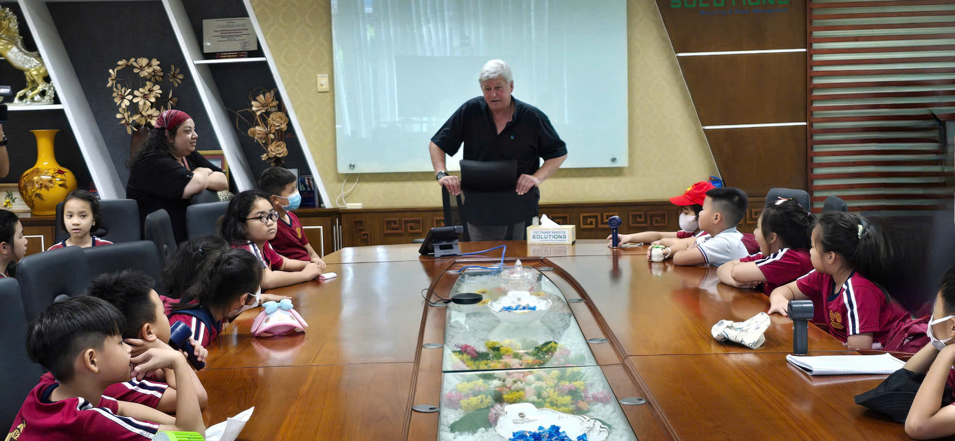 Buổi giao lưu nhanh chóng trở nên sôi nổi khi các em hào hứng đặt câu hỏi về tái chế rác thải, các nguy cơ ô nhiễm… Mỗi câu hỏi đều được lãnh đạo Công ty VWS trả lời một cách dễ hiểu, gần gũi và phù hợp với lứa tuổi học sinh.