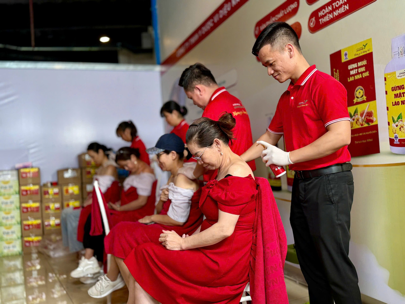 Không chỉ giới thiệu sản phẩm, Vi Diệu Nam còn tổ chức khu vực trị liệu miễn phí phục vụ khách tham quan. Dưới sự hướng dẫn của đội ngũ lương y và kỹ thuật viên chuyên môn, khách mời được trải nghiệm các liệu pháp xoa bóp, day ấn huyệt vùng cổ vai gáy và thắt lưng – gối, hỗ trợ thư giãn và giảm đau mỏi. Hoạt động này không chỉ mang lại trải nghiệm thực tế mà còn lan tỏa thông điệp nhân văn của doanh nghiệp trong việc chăm sóc sức khỏe cộng đồng.