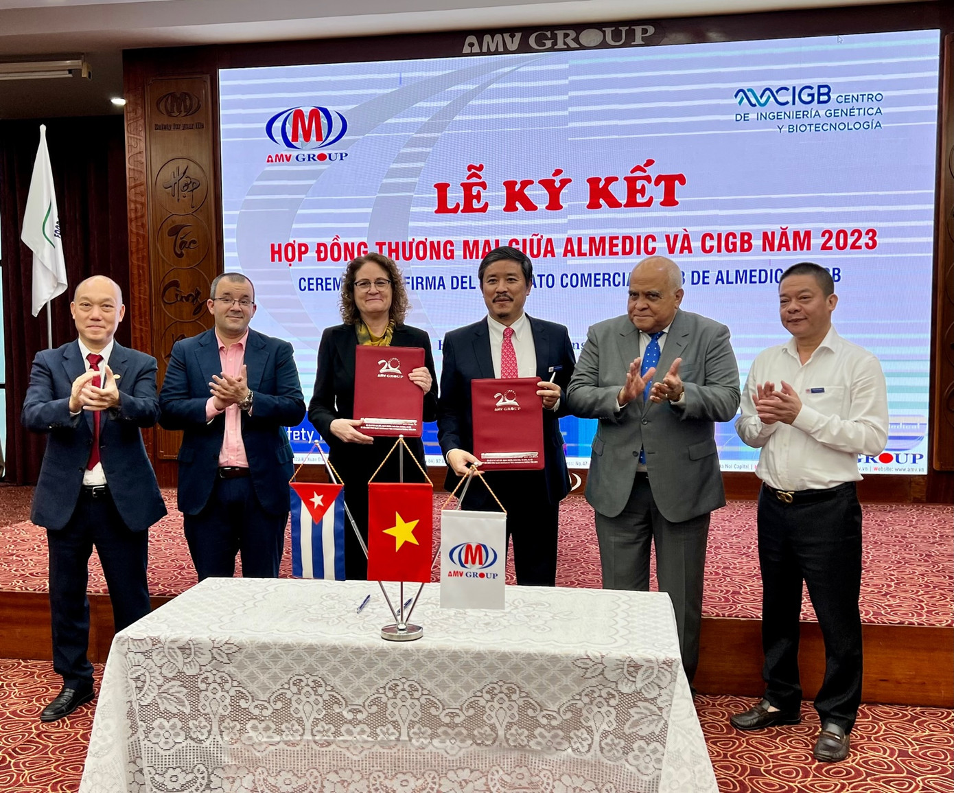 Sau hơn 2 năm bị gián đoạn bởi dịch covid, năm nay hai bên tiếp tục kí hợp đồng cung cấp hàng hóa. Buổi lễ ký giữa Almedic và CIGB có sự chứng kiến của ngài Đại sứ đặc mệnh toàn quyền Cuba tại Việt Nam Orlando Nicolas Hernandez Guillen và Tham tán thương mại Cuba tại Việt Nam...