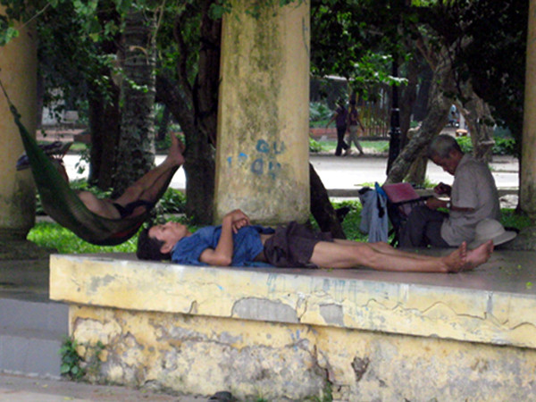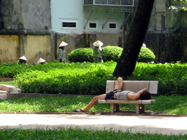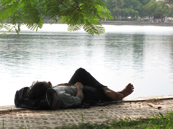 Tình trạng này cũng diễn ra ở nhiều nơi khác ở Hà Nội, từ vỉa hè, đến bờ hồ, hay bất cứ nơi nào thoáng mát mà người ta cảm thấy yên tâm ngả lưng.