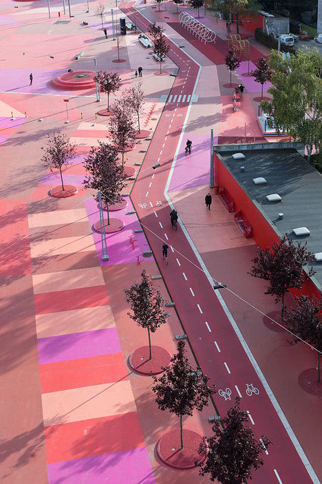 Phần quảng trường được xác định là tâm điểm của toàn công viên với 3 màu sắc chủ đạo sơn dưới nền đường, đó là đỏ, hồng và cam. Nơi đây là địa điểm vui chơi, giải trí, sáng tạo nghệ thuật của các bạn trẻ ở thủ đô Copenhagen.