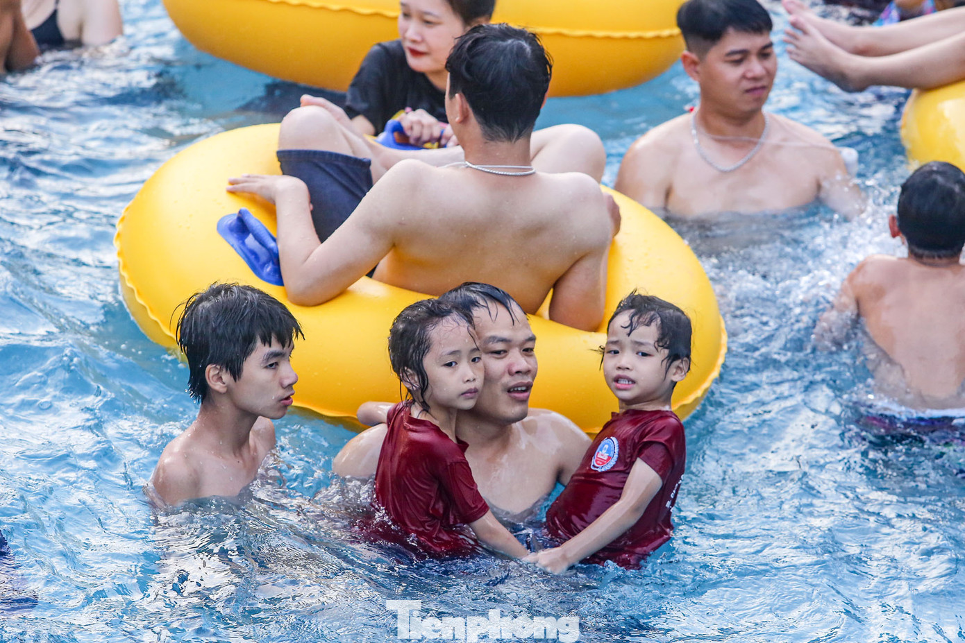 Thời tiết tại Hà Nội dịp nghỉ lễ có phần nắng nóng, nhiệt độ lên đến 36 độ C nên nhiều người đã lựa chọn Công viên nước Hồ Tây để vui chơi.