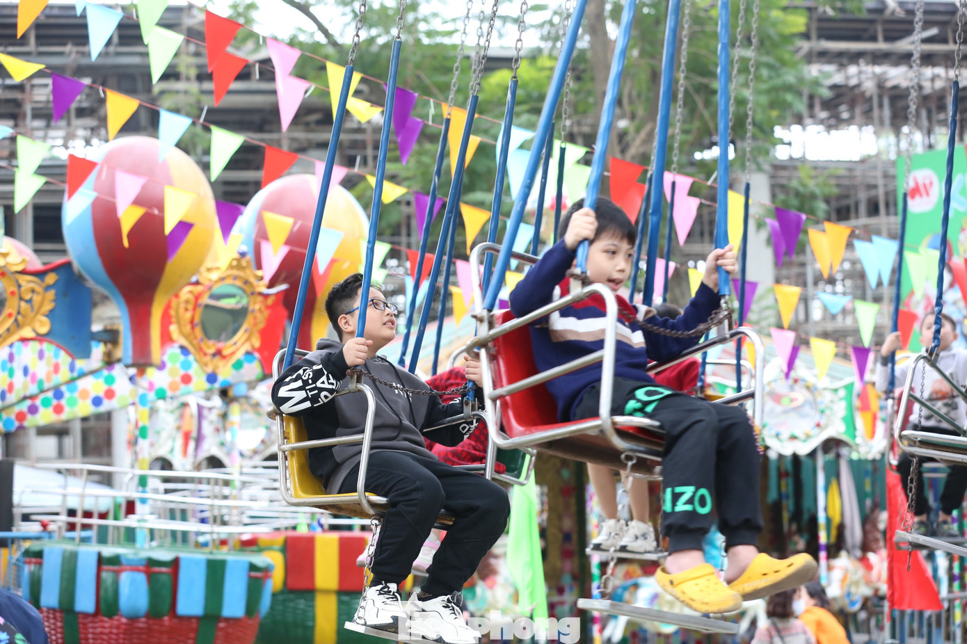 | Các em bé thoải mái vui chơi với các trò chơi yêu thích ở công viên Thủ Lệ. |