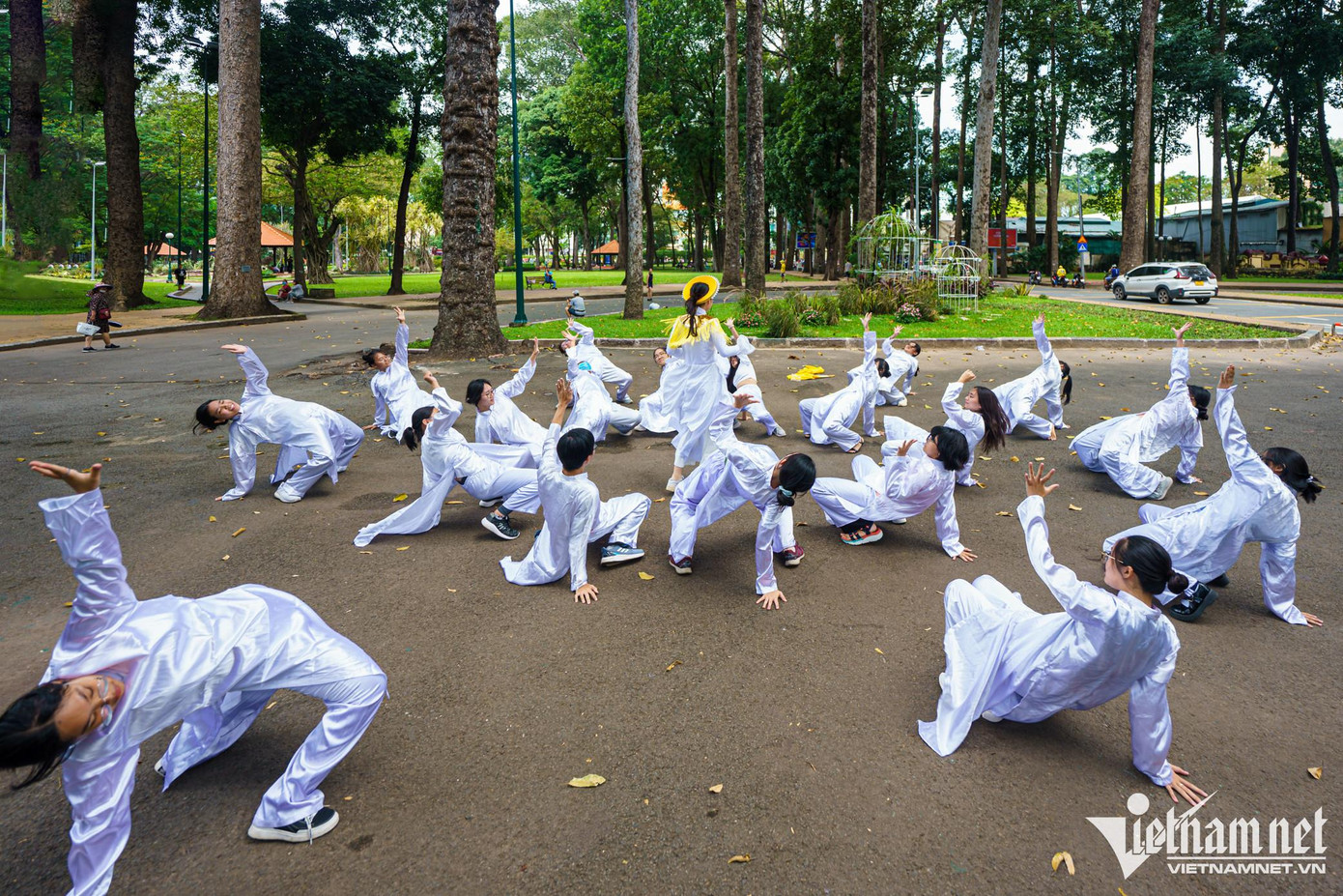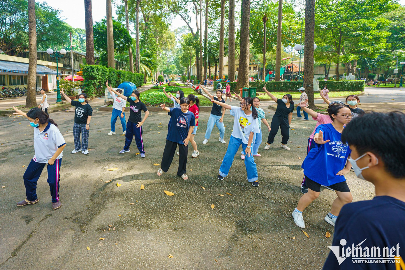 Học sinh, sinh viên ở các trường thường xuyên chọn đây là điểm tập luyện văn nghệ vì có bóng mát lớn và không khí trong lành.
