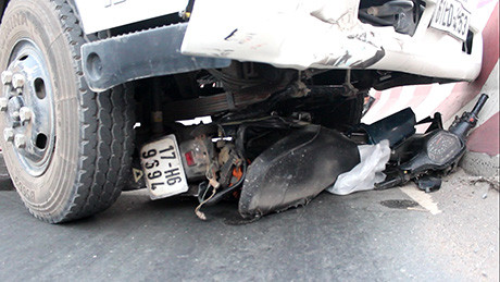 Vào thời điểm trên, xe máy mang BKS 17H6 – 9694 do một thanh niên điều khiển đang dừng ngay trước đầu xe tải BKS 61LD - 014.53 thì bất ngờ bị chiếc xe container mang BKS 51C-466.15 kéo theo rơ-moóc 51R – 024.87 lao tới tông vào đuôi. Cú tông mạnh khiến chiếc xe tải bị lùa về phía trước, cuốn xe máy vào gầm đẩy đi đâm vào dải phân cách.